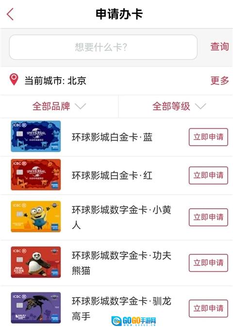 选择您要申请的信用卡,点击“立即申请”;