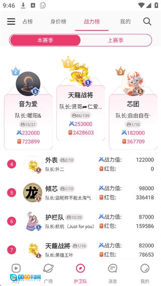 在全站范围内,统计过去7天内某一护卫队每日的战力值总和(统计时间为截止时间),依据战力值进行排名,前10名的护卫队可上榜,上榜的护卫队将获得战力值增加200个点数的奖励。