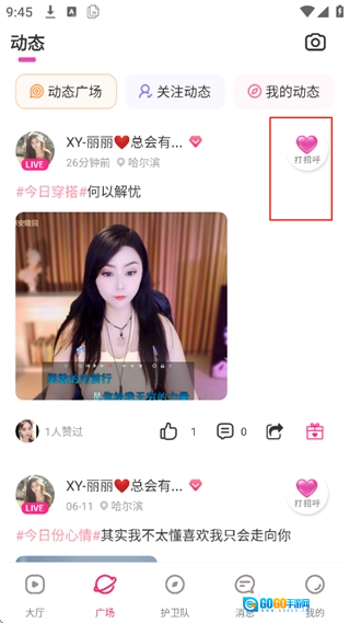 软件内还设有广场和护卫队板块,在广场上看到喜欢的内容可以点击打招呼。