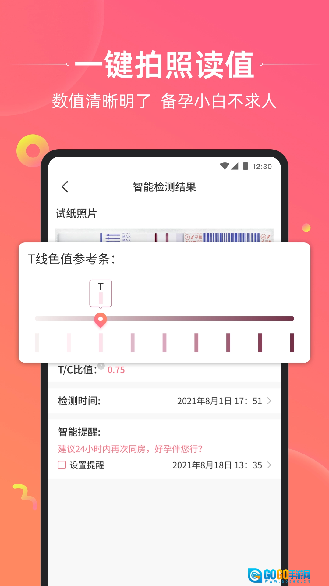 孕橙试纸具备智能特性,无需自行判断结果,可直接读取;拍照后还能获取即时的智能分析以及同房相关提示。