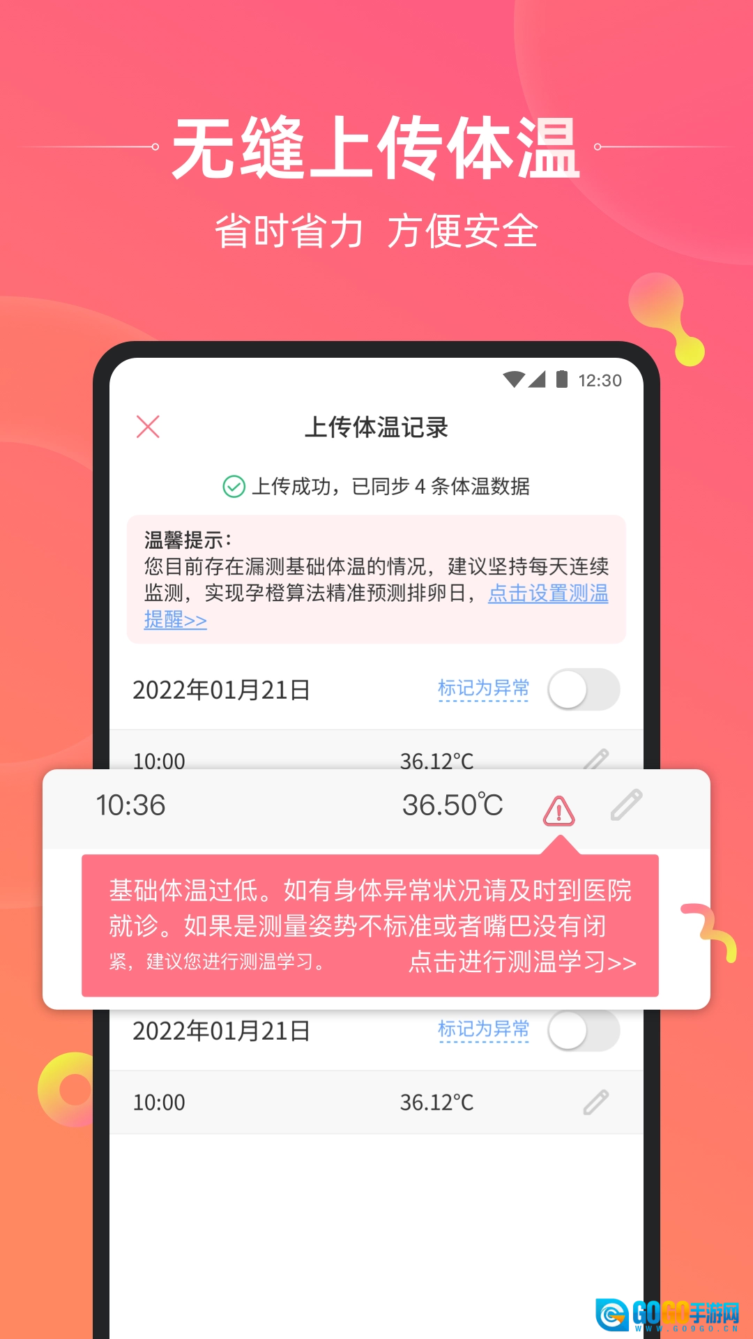 监测基础体温,分析月经周期,提示月经到来;