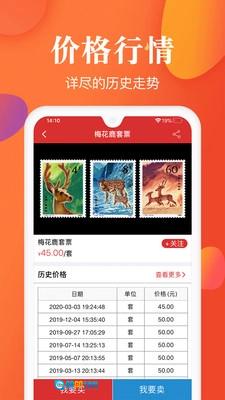 可以查看邮票、纪念币的历史价格走势,以便进行详细了解;