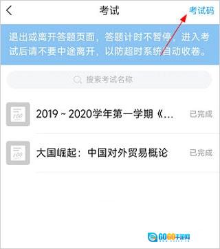 接着点击右上角的“考试码”。