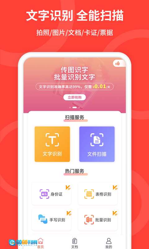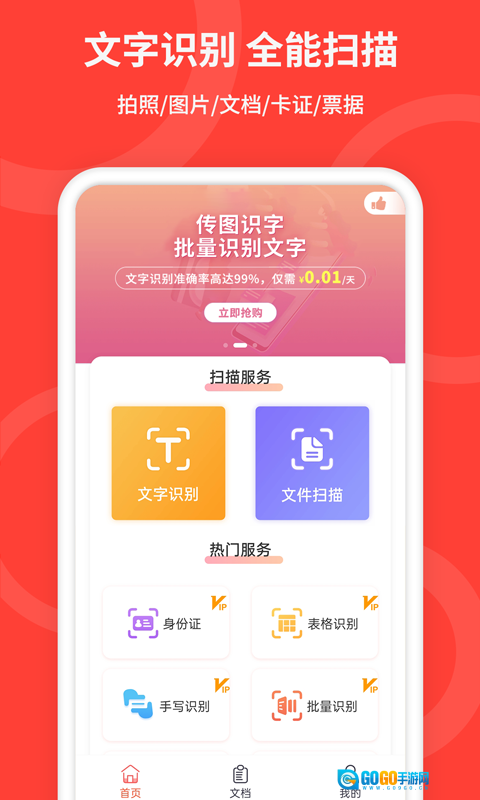 除了文档扫描功能外,扫描还具备文字识别能力,可精准提取图片中的文字内容,方便用户开展后续操作。