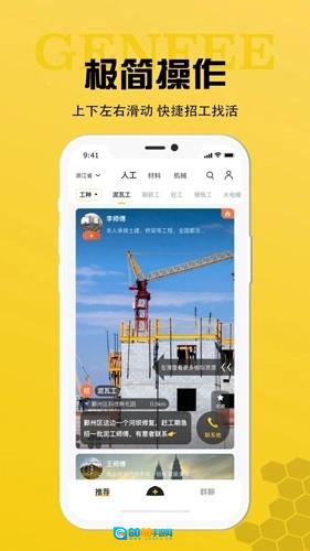工蜂招工是一款工程建筑领域的资源查询工具,您可以通过它查找工人、材料、机械等各类资源,帮助您更便捷地获取所需服务,确保需求得到及时高效的响应与解决;同时支持您直接筛选并寻找合适的管理人员。