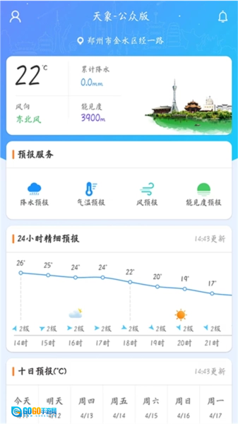 河南天象依托河南气象的专业支持,提供精准全面的天气数据,包含降水、气温、风速、能见度等核心气象要素。该应用整合了各类气象资讯,助力用户及时做好天气研判,有效降低灾害影响。同时,它致力于提升用户生活品质,为日常出行提供便利,能快速推送准确的气象数据供用户参考,还配有丰富的动态图表展示功能。用户可按需查看3小时、12小时、24小时等不同时段的降水、风速分布详情,也能便捷浏览河南省内各城市的天气状况。