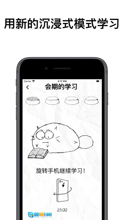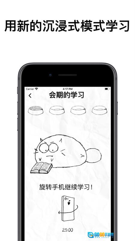 把手机翻转过来,别让它在你学习时干扰你——只有当你真正投入学习,猫咪才能跟着一起学习哦!