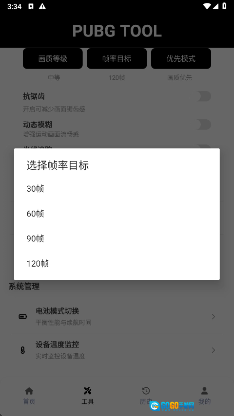 还能开启抗锯齿、动态模糊、游戏阴影等功能,也可以调整手机的电池模式,并且对手机温度进行实时监控。