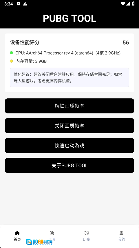 打开PUBG Tool后,PUBG Tool画质助手就处于开启状态了。