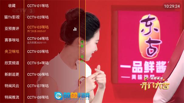 点击左侧屏幕可以显示频道列表。