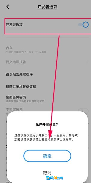 要进入开发者选项界面,我们得把“开发者选项”这个选项勾选起来。