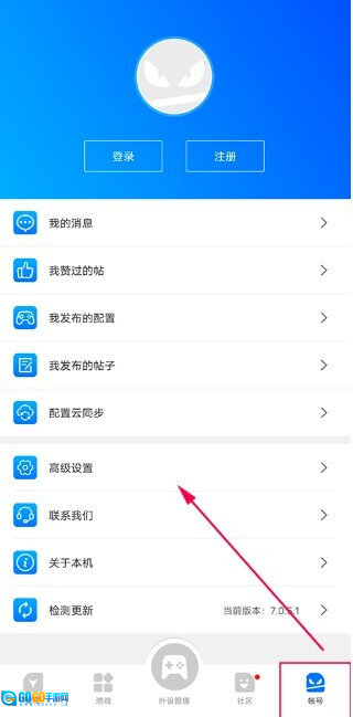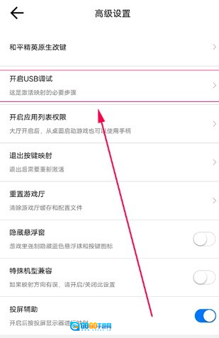 在激活映射功能前,需先开启手机的USB调试功能。操作步骤如下:首先进入手机主页,在“账号”选项中点击打开“高级设置”,具体操作可参考下图。