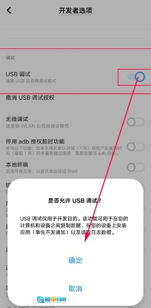 在里面找到“调试”子栏目,把其中的“usb调试”勾选开启