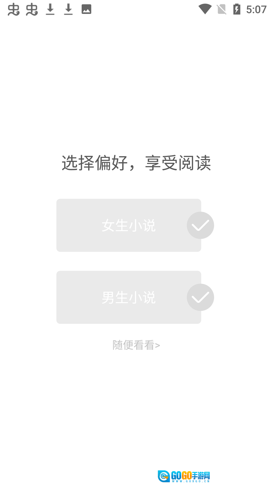 软件安装完成并启动后,首页会呈现面向男生和女生的差异化分类推荐,涵盖分类、排行榜、完结作品、新书推荐以及口碑佳作等板块内容。