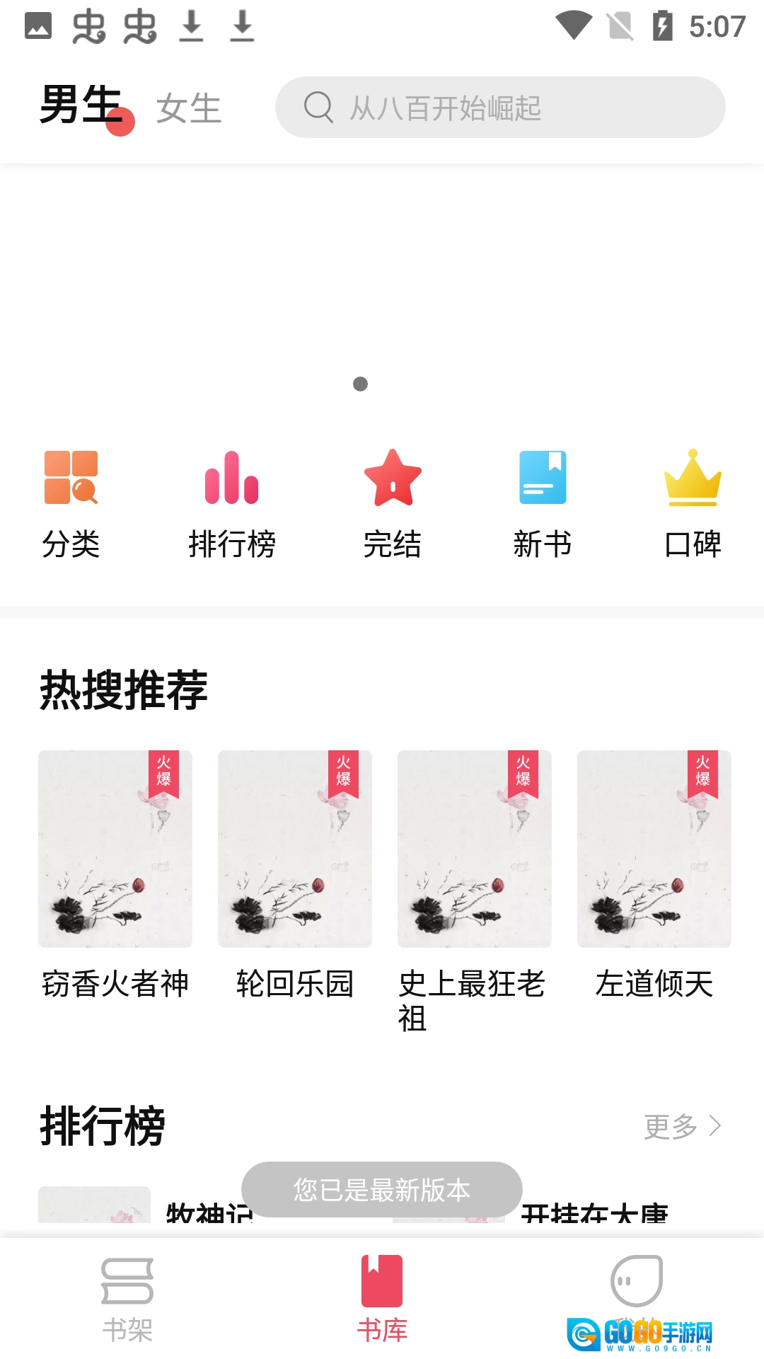 在排行榜板块,能够查看各类小说的热搜榜、完结榜、新书榜和口碑榜。