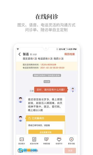 该应用支持实时线上复诊与患者管理,同时提供图文及电话咨询服务。