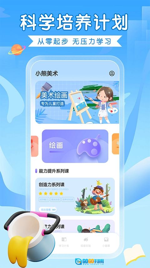 美术学习规划,有序带领幼儿从基础笔触开始逐步进阶,直至独立完成作品创作。