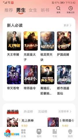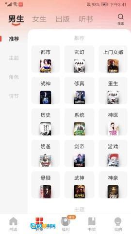 进入书城页面后,你可以选择推荐、男生、女生、听书等各类分类,不用费力搜索就能轻松找到喜欢的书籍。