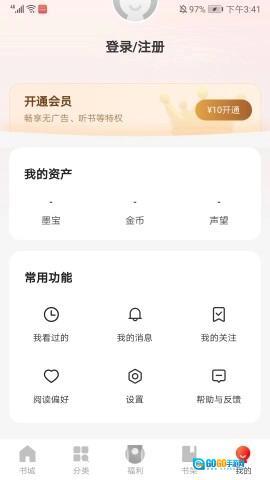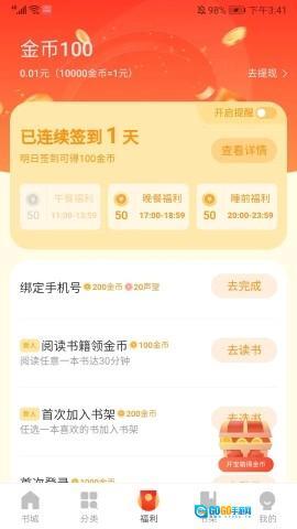 首先打开阅瓣免费小说,进入主界面后,你会看到书城、分类、福利、书架和我的等多个栏目,选择你感兴趣的区域去探索吧。