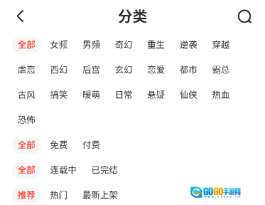 在首页搜索栏输入名称或作者,或通过分类筛选。