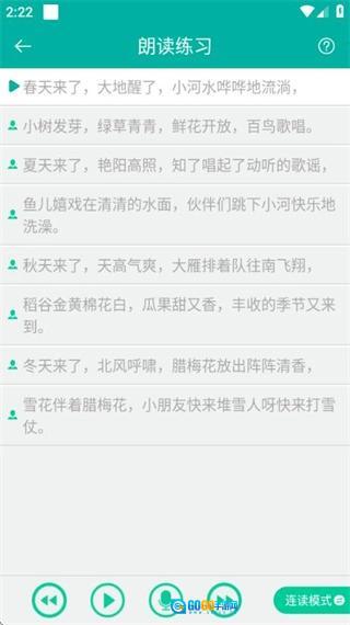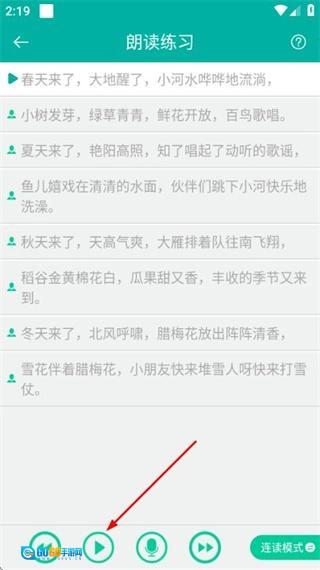 在朗读练习页面点击播放按钮,即可启动该内容的朗读练习。