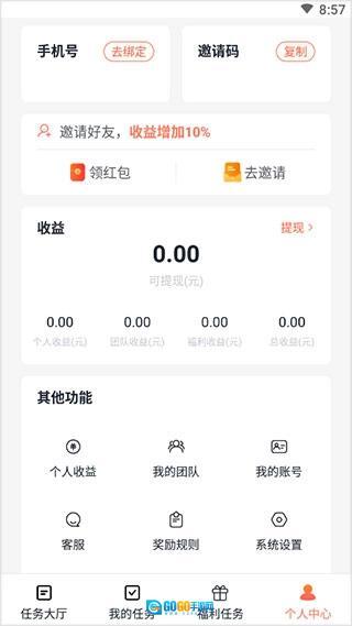 在个人中心里,你能查看自己的账户余额,还能了解邀请他人获取收益的具体方式等内容。
