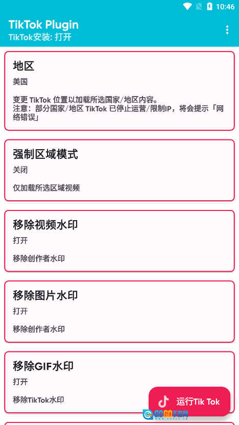 tiktok插件(即tiktok plugin换区器)是一款专为tiktok玩家开发的换区工具应用。用户可依据插件的提示与界面布局,自主设置地区、去水印、去广告等选项并启用对应功能。完成设置后,就能体验各类插件功能——借助它可直接打开刷短视频,无需担忧区域限制问题;此外,插件还提供了编辑等实用的附加功能,整体使用起来十分便捷。