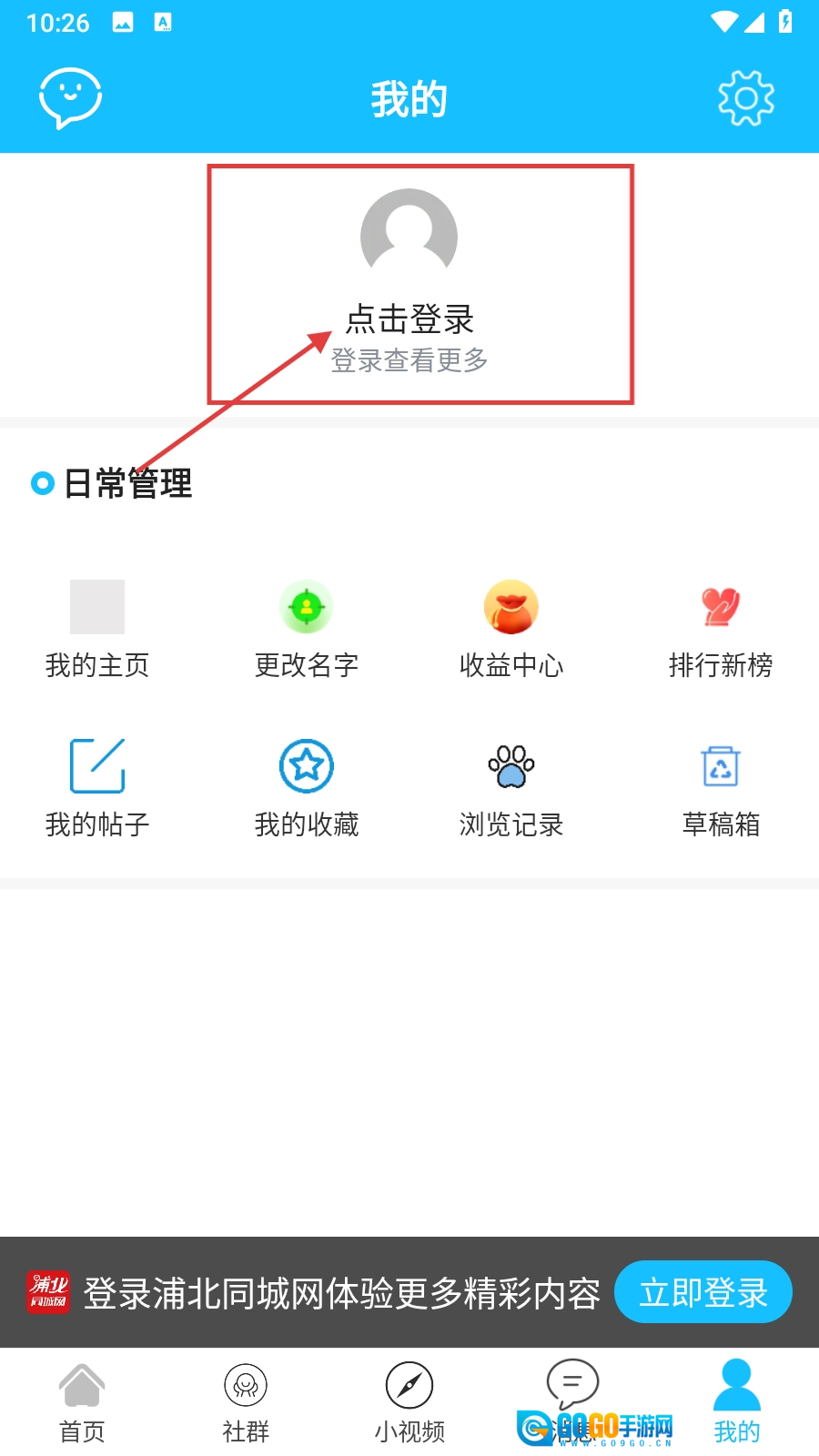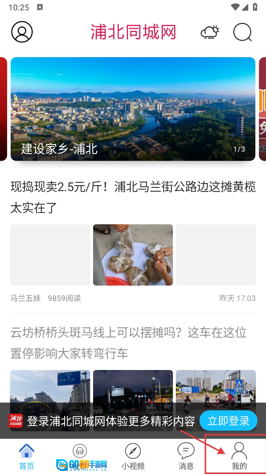 在浦北同城网首页,点击右下角的【我的】按钮,就能进入个人中心界面。