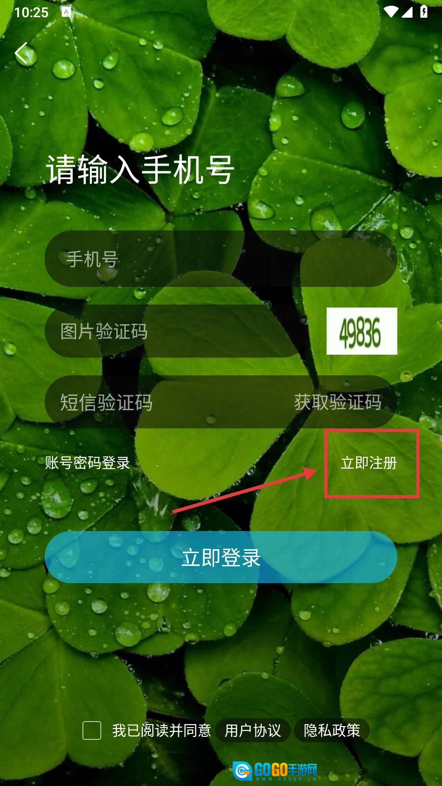 在登录界面,点击【立即注册】按钮后,就能进入注册流程中的手机号输入界面。