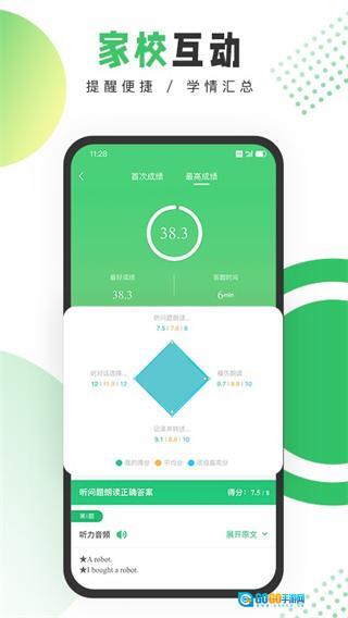 搭载自主研发的专业语音评测技术,评测标准与正规英语听说考试看齐,可精准捕捉发音问题,为学生口语练习提供权威评分及改进建议。