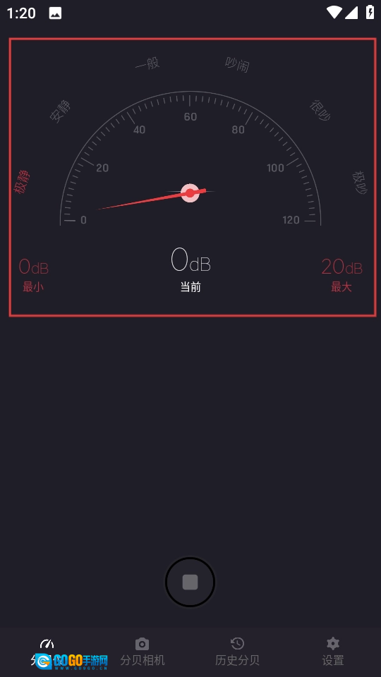 分贝仪界面会呈现噪声数值,启动检测后,可记录下最小、当前以及最大分贝值。