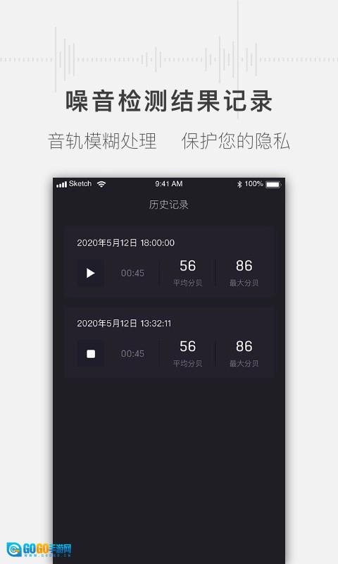 噪音检测结果记录:采用音轨模糊处理,用户可查看过往的噪音检测数据,了解不同时间和场景下的噪音情况,为评估环境噪音变化提供依据,使用更安心。