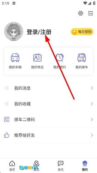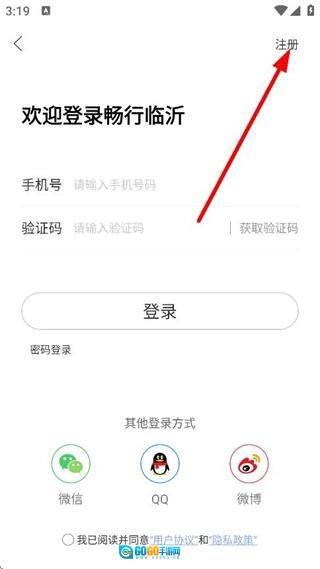 在个人页面,点击登录/注册,进入登录注册页面。