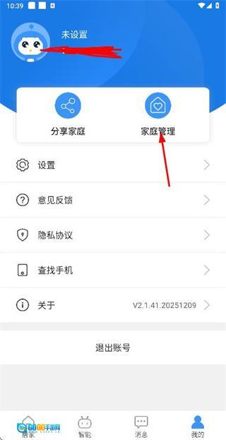 在我的页面点击家庭管理选项,进入家庭管理页面。