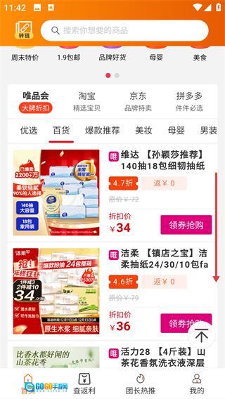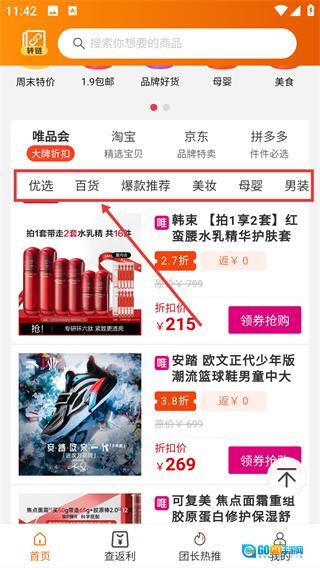 在优惠购物应用的首页,挑选你想查看的目标平台(例如【唯品会】),这样就能跳转到该平台对应的商品列表页面了。