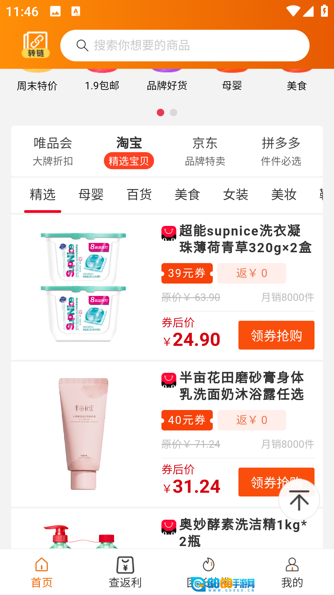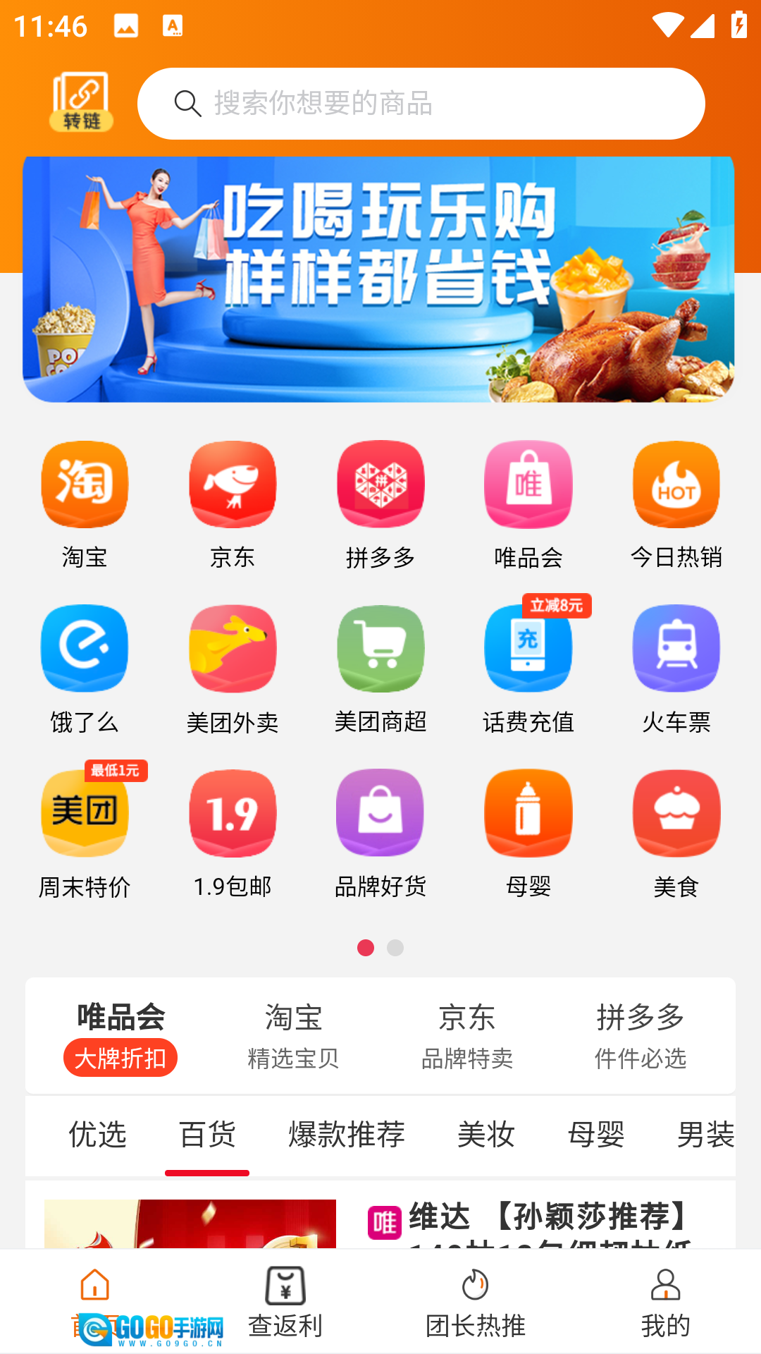 在平台页面里,挑选分类标签(例如【百货】),就能筛选出该类别下的优惠商品。