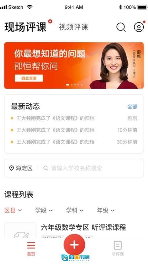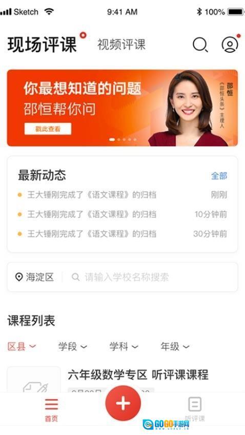 听评课App主要包含五大模块:听课、评课、学习、个人中心与设置。