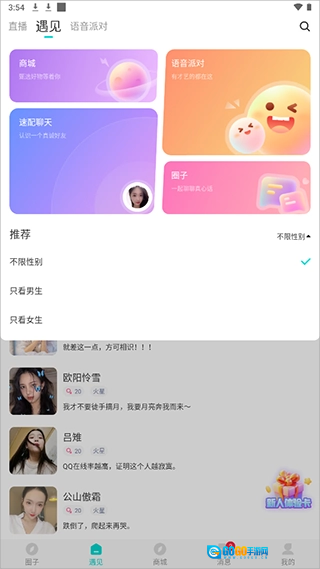 用户接下来可以在应用的【圈子】页面,选择推荐的热门主播或网红,对他们进行关注并添加为好友。