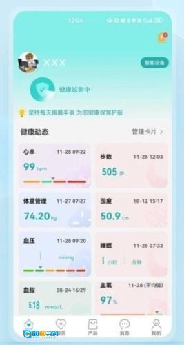 健康动态监测:全方位追踪心率、步数、血氧等各类身体指标,便于用户随时查看。