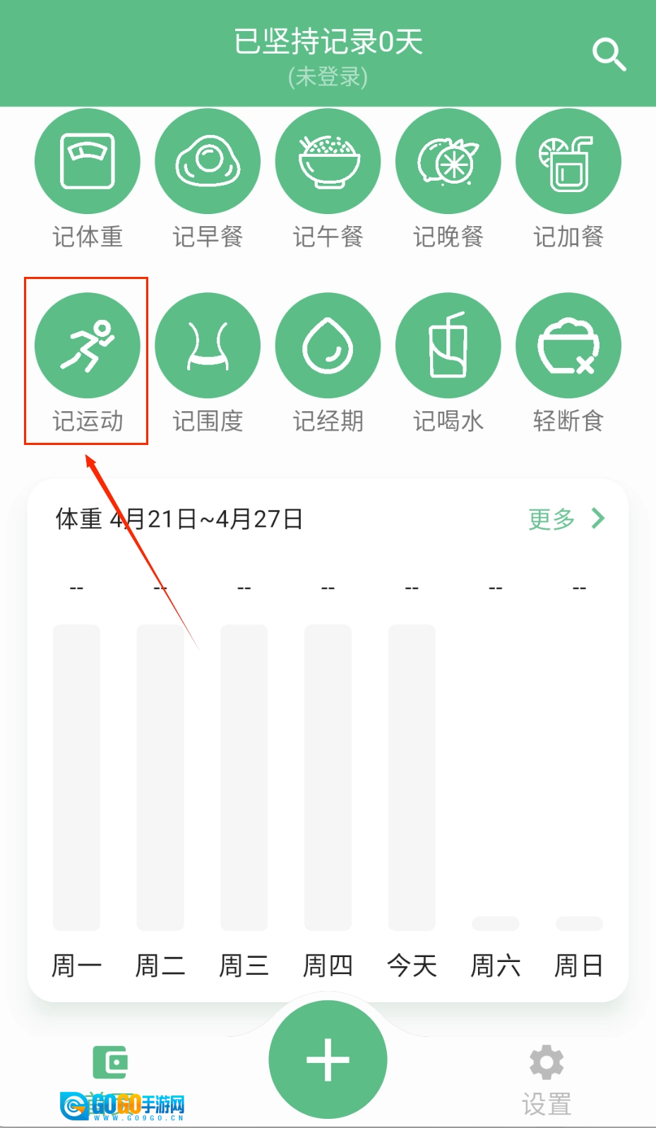在记录页面,用户可以记录自己的每日饮食情况,同时记录下自身的卡路里摄入和消耗数据。