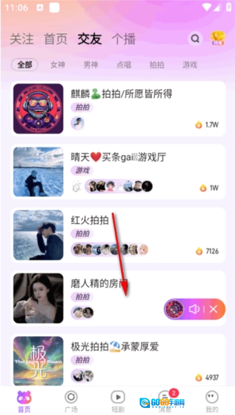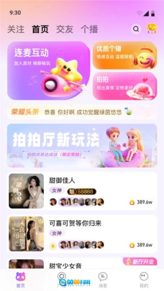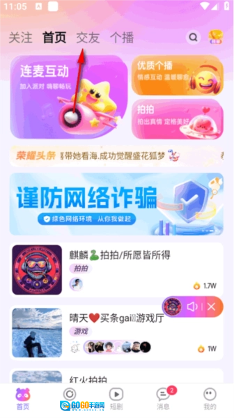 设有个播、连麦互动、拍拍厅等多种互动场景,个播可展示个人风采,连麦互动增强实时交流。