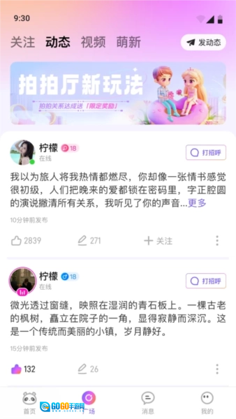 支持用户分享生活中的点滴,通过动态的形式发布文字内容,便于用户记录生活感悟、日常趣事等。