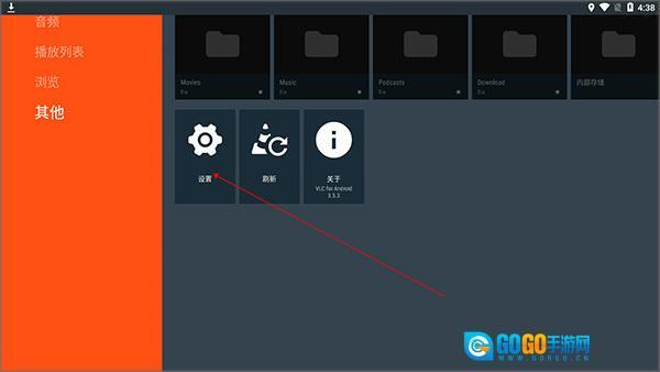 安装好VLC播放器电视版后,进入软件主界面并点击设置选项。
