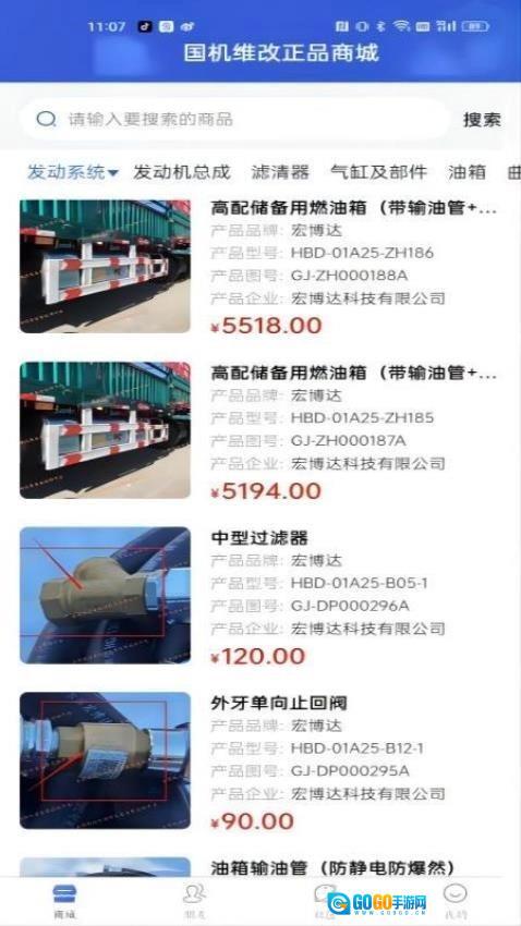 覆盖发动机、底盘、电气系统等全品类配件,支持关键词搜索与条件筛选。