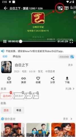 在播放页面,点击右上角区域,就能看到一个【投屏/TV】图标,具体样式可参考下图:
