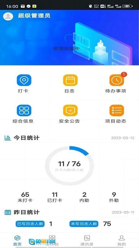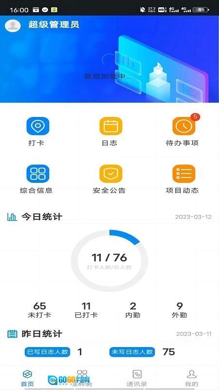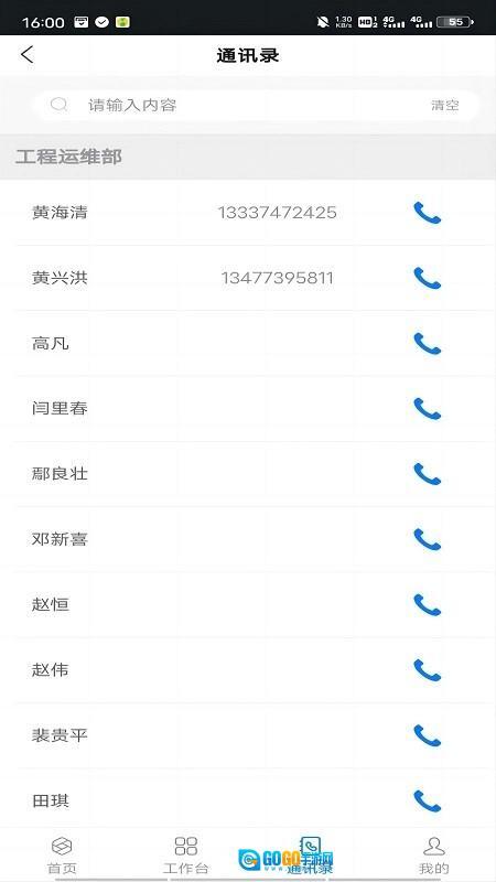 【通讯录】系统会自动生成通讯录,只要是参与同一项目的人员,都会被列为联系人。