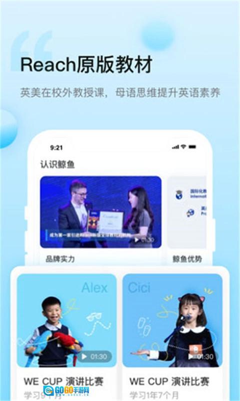 鲸鱼小班是专门面向青少年打造的英语学习辅助软件,在这里你能体验到专业的外教培训,无论是宝宝的早教启蒙、儿童英语的零基础入门,还是中小学生英语读物的听写能力,都可以得到有效的提升。软件内包含了丰富多样的教材内容、六十余篇经典读物以及五十种不同的阅读策略,助力你培养双语思维与语言天赋,让英语学习过程更加轻松高效。