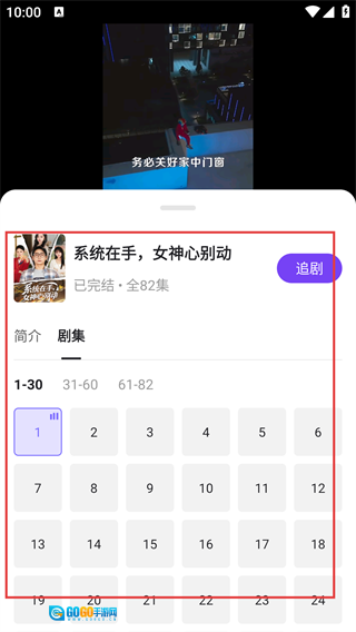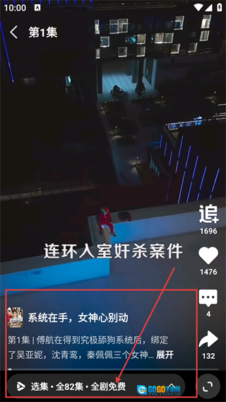 点击已选中的短剧即可进入播放页面,接着点击标有【选集·全82集·全剧免费】的按钮,就能展开剧集选择界面。