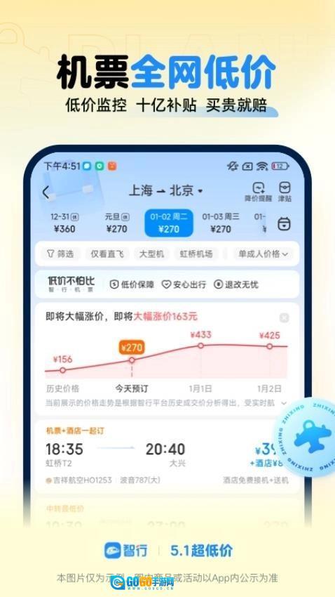 【智行机票】超低价机票保障买贵必赔,轻松飞,更划算!