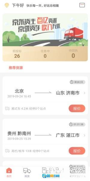 打开京驿货车应用后,在加载页面稍等片刻就能进入司机端的操作主界面。